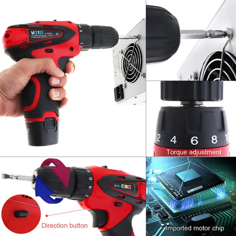 Cheap 2 Speed 12V Cordless Powerful Electric Screwdriver Torque Electric Drill Power Tools Rechargeable L